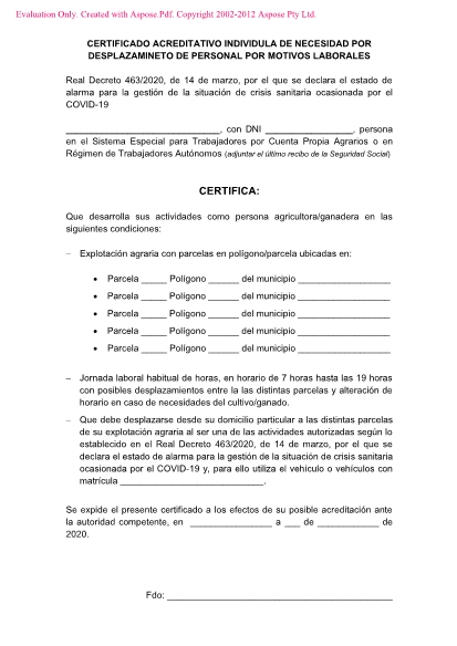 - Model de certificat que justifica el desplaçament de la persona agricultora i/o ramadera.