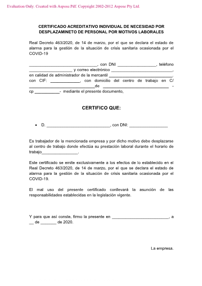 - Model de certificat que justifica el desplaçament al personal laboral contractat per la persona titular de l'explotació.