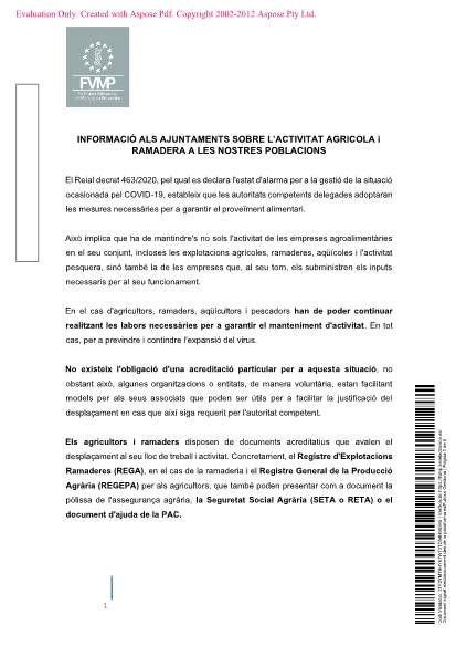 - Circular de la FVMP als Ajuntaments sobre l'activitat agrària en els termes municipals.