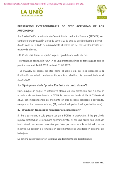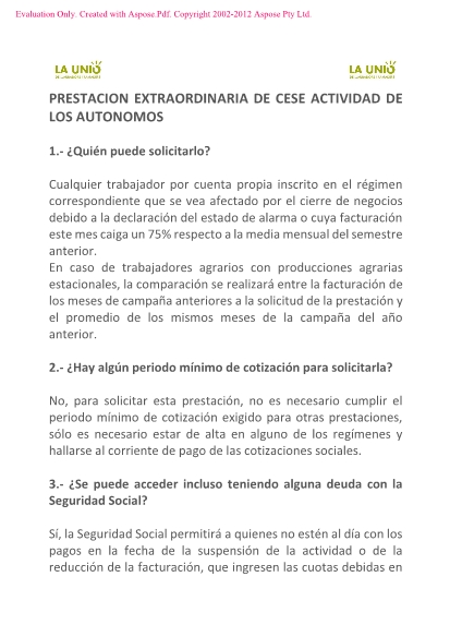 - Preguntes més freqüents sobre la prestació extraordinària de cessament d'activita de los treballadors autònoms.
