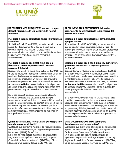 - Preguntes més freqüents sobre l'aplicació de les mesures de l'estat d'alarma en el sector agrari.