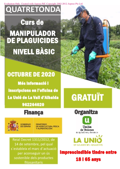 Curs de Manipulador de Plaguicides nivell Bàsic en Quatretonda