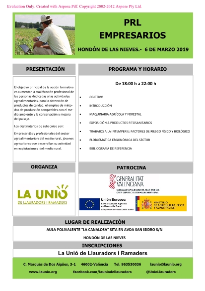 Curso de "PRL EMPRESARIOS" en Hondón de las Nieves
