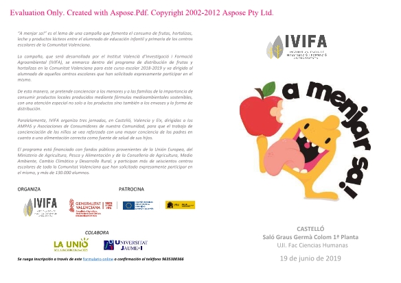 Les jornades formen part del pla A Menjar sa! d'aquest curs 2018-2019, que fomenta el consum entre l'alumnat de fruites i hortalisses, llet i productes lactis. Es duu a terme en un total de 614 centres escolars de tota la Comunitat Valenciana que han sol·licitat expressament participar en el mateix i arribarà a uns 135.000 alumnes de primària. El pla, desenvolupat per IVIFA, està finançat amb fons públics provinents de la Unió Europea, del Ministeri d'Agricultura, Pesca i Alimentació i de la Conselleria d'Agricultura, Medi Ambient, Canvi Climàtic i Desenvolupament Rural.